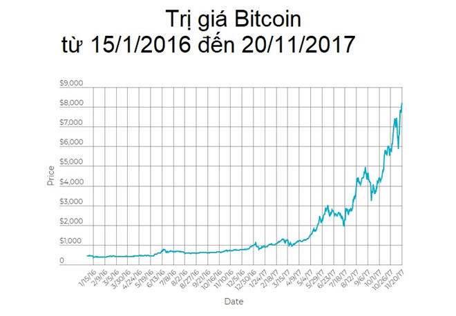 Bitcoin tăng giá rất nhanh. Vào cuối tháng 11/2017, đồng tiền này được giao dịch với giá hơn 10.000 USD cho mỗi đơn vị – tăng gần 900% trong năm. Một loại tiền tệ bị cho là vô giá trị nhưng nếu muốn sở hữu, người ta phải bỏ ra rất nhiều tiền.