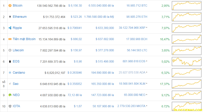 Tỷ giá hiện tại của Bitcoin ở mức 8.156,30 USD, tăng hơn 3% sau khi giảm xuống mức 7.850 USD vào hôm 17/3. Sự hồi phục nhanh chóng của Bitcoin và sự biểu hiện mạnh mẽ của những altcoin lớn như Monero và 0x cho phép giá trị vốn hóa thị trường leo lên mức 342 tỷ USD.