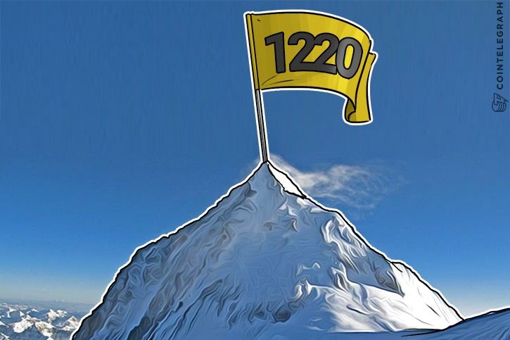 Giá Bitcoin đã lại chạm mốc $1,200 kể từ lần gần đây nhất là vào ngày 13/4. Tại đỉnh, nó vượt mức $1,220, và được trao đổi với giá trị $1,222 trên hầu hết các sàn giao dịch lớn.