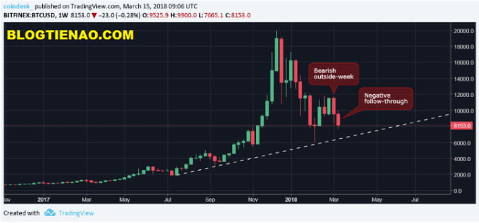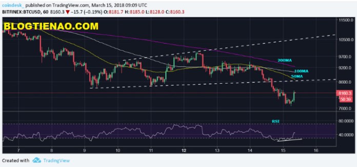 Hôm qua, giá Bitcoin đã có lúc giảm dưới 8.000 USD trước khi tăng nhẹ vào sáng hôm nay. Nhưng hướng đi sắp tới...