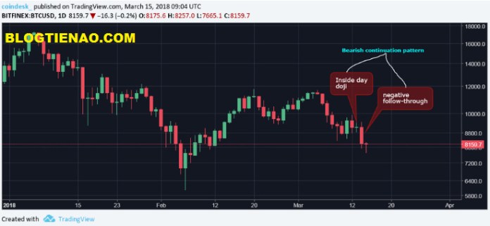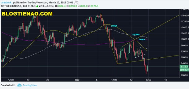 Cách đây 2 ngày, Coindesk đã có một bài phân tích các biểu đồ Bitcoin để dự đoán xu hướng giá của chúng trong tương lai gần, khi đó các biều đồ cho thấy giá Bitcoin sẽ giảm xuống mốc 8,000 USD trong thời gian ngắn sắp tới và quả thật, hôm qua giới đầu tư đã chứng kiến có lúc giá Bitcoin đã trượt xuống dưới mức 8,000 USD.