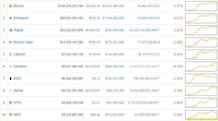 Giá top 10 trên CoinMarketCap: