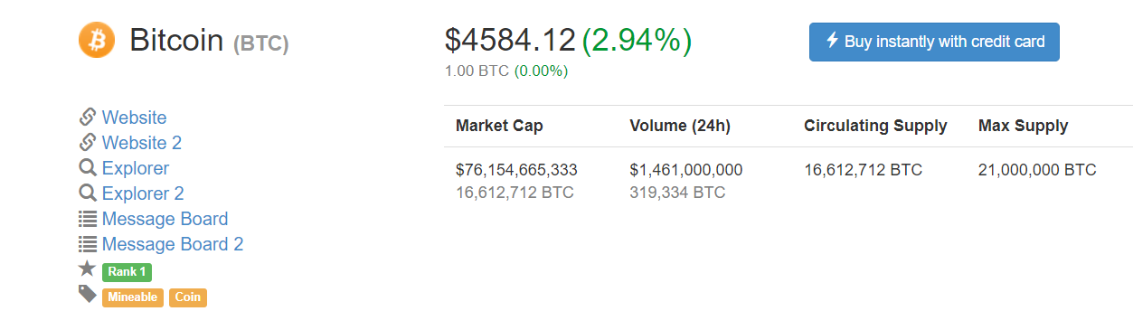 Dữ liệu mới nhất từ CoinMarketCap và Bitcointicker cho biết ở thời điểm thực hiện bài viết, giá trị đồng tiền điện tử số 1 thế giới đang lượn lờ quanh mốc $4,580.
