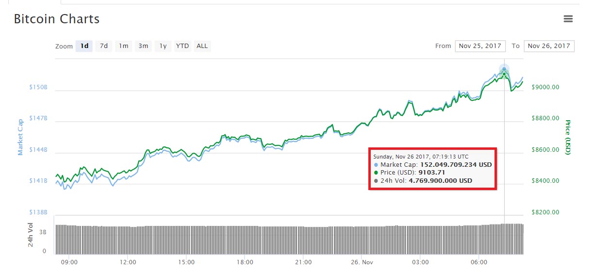 Biểu đồ giá bitcoin ngày 26/11