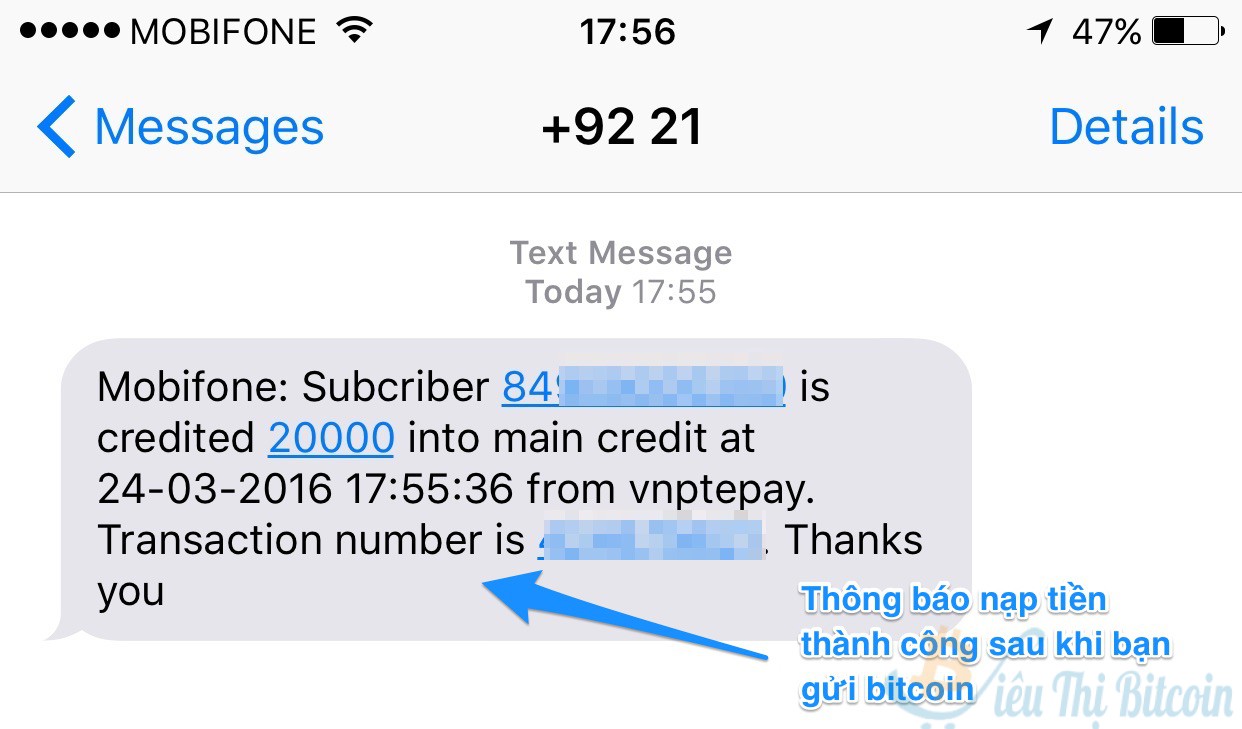 Bước 4: Bạn nhận được tiền trong điện thoại
