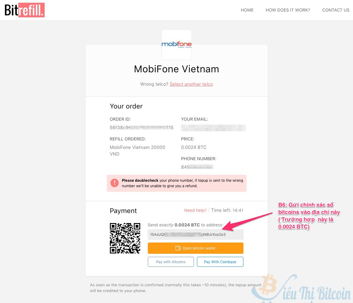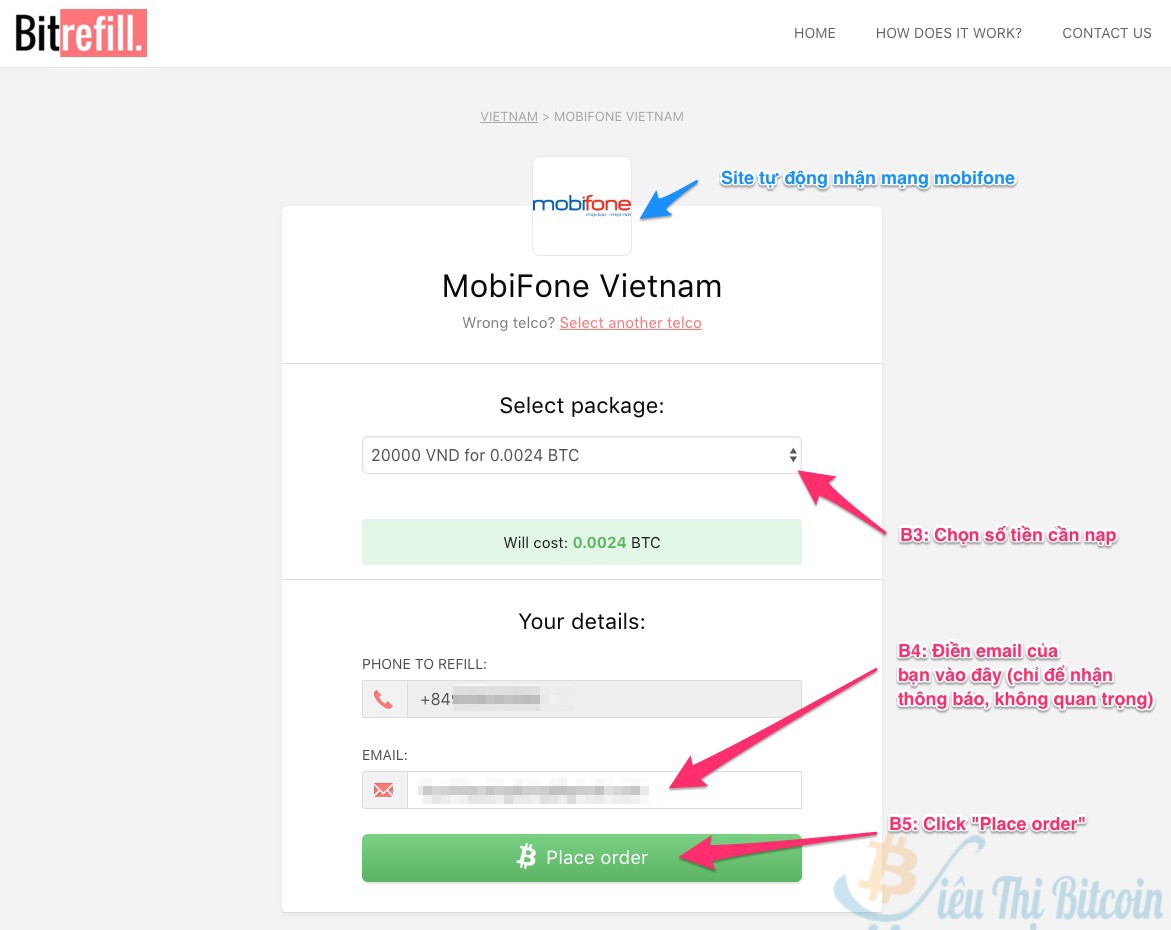 BitRefill – Hướng dẫn nạp tiền điện thoại bằng Bitcoin tất cả các mạng Việt Nam