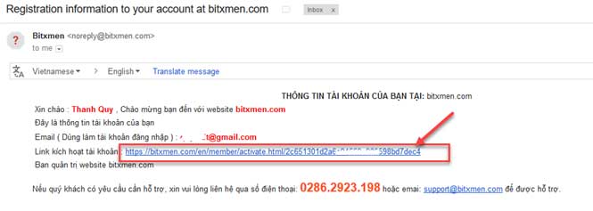– Sau khi đăng ký thành công hệ thống Bitxmen sẽ gửi link kích hoạt tài khoản đến email của bạn.