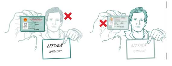 – Picture of yourself holding Photo ID : là hình bạn cầm CMND để xác nhận CMND này là của bạn. Chụp hình phải đúng theo chuẩn dưới đây, nếu sai hệ thống sẽ không chấp nhận.