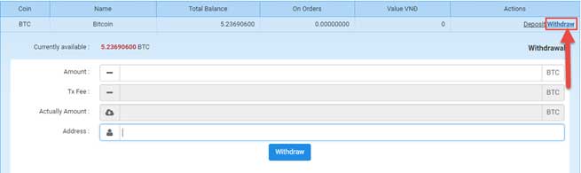 • Click vào Withdraw sẽ hiện ra cửa sổ :