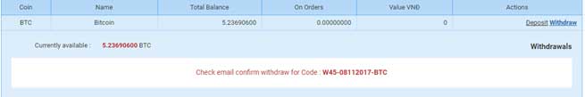 Sau khi nhập số lượng và địa chỉ cần chuyển sau đó các bạn vào email xác nhận để rút tiền
