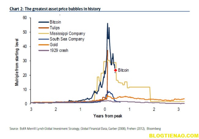 Theo hãng tin Bloomberg, Nhà chiến lược Đầu tư của Bank of America – Michael Harnett đưa ra tuyên bố rằng Bitcoin đang bước vào con đường mà các bóng bóng tài sản khổng lồ từng bùng nổ đã đi.