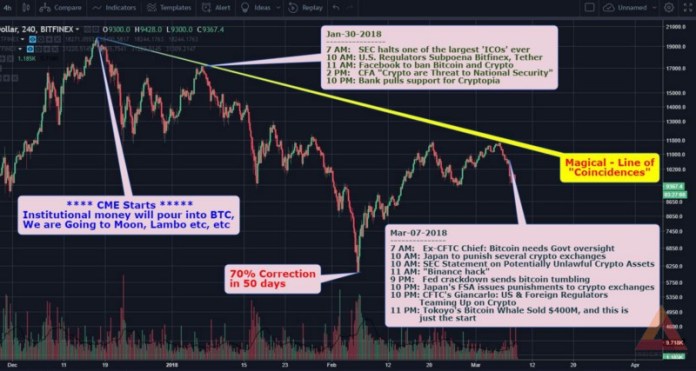 Tất cả những gì xảy ra từ ngày 17 tháng 12 năm trước đều đã được “sắp đặt”. Ban đầu Bitcoin đã bị thao túng đôi chút bởi CME cho tới khi những “người chơi thực sự” vào cuộc.