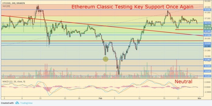Ethereum Classic đang giao dịch trong khoảng 32 USD đến 34 USD một lần nữa, vì nó tiếp tục được điều chỉnh mức tăng của đợt phục hồi đầu tuần.