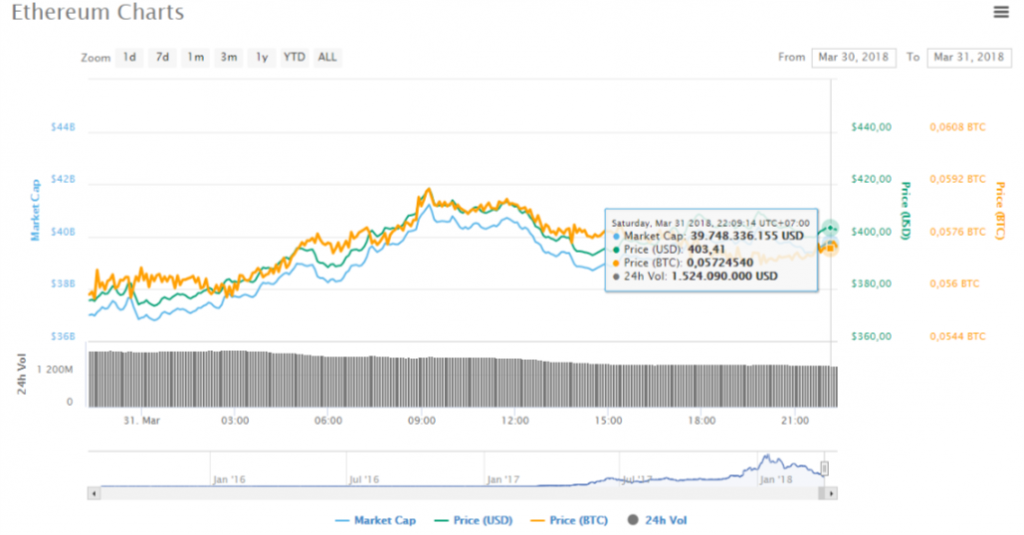 Ethereum (ETH) cũng đang có màu xanh, tăng hơn 5% trong vòng 24 giờ và được giao dịch ở mức giá khoảng 405 USD trong thời điểm hiện tại, sau khi bật lên từ mức thấp 371 USD.
