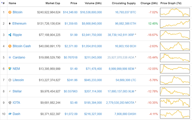 Cuộc đua càng trở nên gây cấn hơn khi giá ripple cùng bitcoin giảm sâu trong khi chỉ mình ethereum tăng giá trong bối cảnh cả thị trường tiền số chìm trong sắc đỏ.