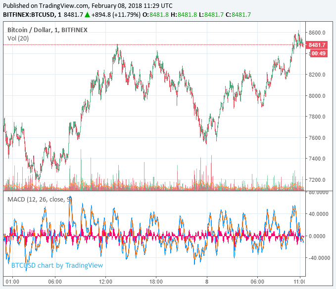 Giá Bitcoin đã tăng trong hai ngày liên tiếp, cuối cùng đạt đến mức giá 8,481 USD (8/2) trên sàn giao dịch Bitfinex. Con số này tăng lên khoảng 4% trong một ngày và cung cấp cho Bitcoin mức vốn hóa thị trường là 142,7 tỷ USD.