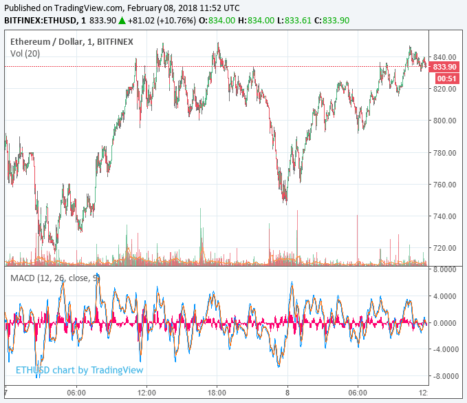 Giá Ethereum cũng tương tự như Bitcoin, nó đã kết thúc ngày trong “vùng” tích cực bất chấp sự suy giảm vào đầu buổi sáng khá rõ rệt (8/2). Ethereum hiện đang giao dịch ở mức 833 USD, tăng khoảng 24% và đưa ra mức vốn hóa thị trường lớn thứ hai với giá trị 81,5 tỷ USD.