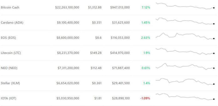 Đáng chú ý là IOTA đã trở lại top 10 sau một thời gian vắng mặt. Nó đạt được điểm này mặc dù đã giảm 1% trong ngày bởi vì NEM – đồng từng chiếm vị trí thứ 10 trên bảng xếp hạng thị trường – đã sụt giảm 4%, làm mức vốn hóa thị trường giảm xuống dưới 5 tỷ USD.