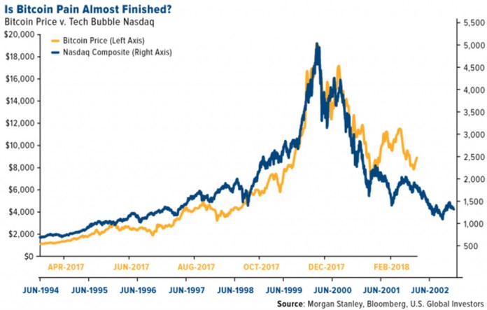Trong Invester Alert tuần trước, nhóm đầu tư của chúng tôi chia sẻ một báo cáo của Morgan Stanley nói rằng giá Bitcoin giảm kể từ khi nó “bắt chước” công nghệ bong bóng Nasdaq vào tháng 12, trong khi công nghệ này đã ra đời vào cuối năm 1990.