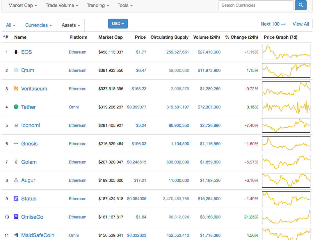 3. Currencies: Tiền tệ mà ở đây là tiền điện tử.