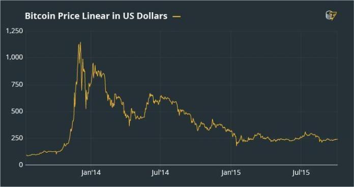 Vào cuối năm 2013, bitcoin có giá gần 1.200 USD, vượt qua ngưỡng tâm lý quan trọng là 1.000 USD, trước khi trải qua đợt suy giảm kéo dài vài năm. Với tổng cộng 411 ngày điều chỉnh, một phần do sự vụ Mt. Gox và lấy đi gần 500 triệu USD khỏi thị trường, bitcoin có lúc xuống mức thấp nhất khoảng 150 USD vào tháng 1 năm 2015.