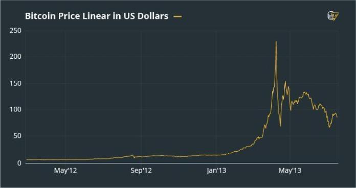 Bitcoin trải qua giai đoạn đầu năm 2012 và năm 2013 khá bình yên. Bitcoin bắt đầu tăng lên mức giá khoảng 13 USD, đạt mức cao nhất là 17 USD. Thời điểm đầu 2013 là một giai đoạn tăng mạnh giá của bitcoin, khi nó vượt qua mức cao nhất cho tới thời điểm đó là 32 USD, đạt 49 USD trước khi giảm xuống còn 33 USD.