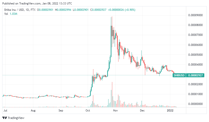 SHIB giảm 67% kể từ khi đạt mức cao kỷ lục 0,00008845 đô la vào ngày 28/10, theo dữ liệu của CoinMarketCap.