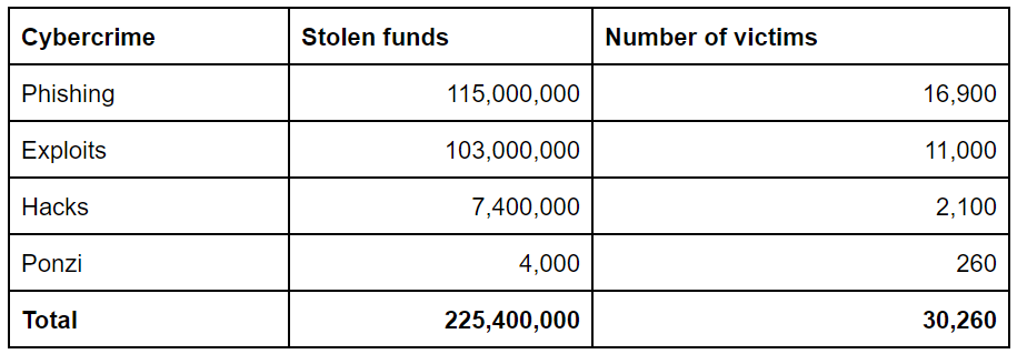 Những kiều hình tội phạm phổ biến nhất trên Ethereum có thể được chia làm 4 loại sau: exploit (lợi dụng lỗ hổng hệ thống để xâm nhập), hack (tấn công xâm nhập), phishing (lừa đảo đánh cắp thông tin) và âm mưu Ponzi.