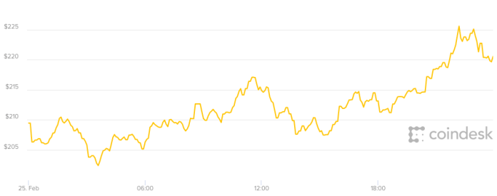 Giá Litecoin hôm nay 26/2đang ở mức 220,47 USD, với mức giá mở cửa đang là 219,96 USD, đồng tiền này đang tăng 0,23%.