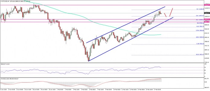 Giá bitcoin đang cho thấy những dấu hiệu tăng giá tích cực so với đồng USD. BTC/USD có thể điều chỉnh tại một số thời điểm trong ngắn hạn, nhưng vẫn sẽ được hỗ trợ trên mức 10.150 USD.