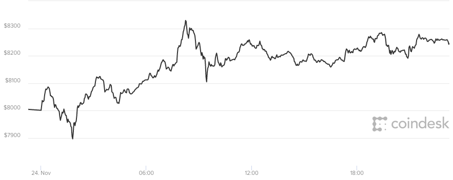 Giá bitcoin hôm nay 25/11 vẫn đang ổn định ở mức trên 8.200 USD
