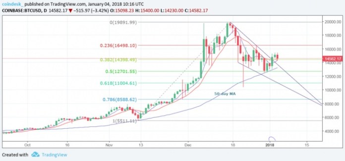 Biểu đồ giá bitcoin (5/1/2018) (Nguồn: CoinDesk)