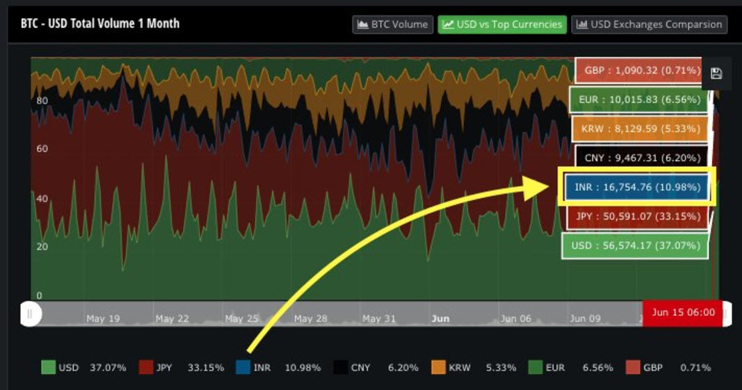 Trước khi có tin này, người đứng đầu quỹ đầu tư tiền ảo ARK Invest, ông Chris Burniske, lưu ý rằng khối lượng giao dịch ở Ấn Độ đang có chiều hướng tăng. Trước đó, Burniske đã tiết lộ rằng các sàn giao dịch Bitcoin của nước này chịu trách nhiệm xử lý khoảng 11% các giao dịch đổi Bitcoin lấy đồng USD.