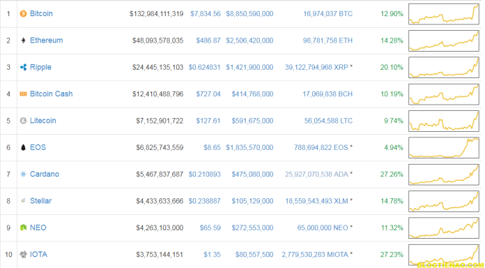 Giá top 10 trên CoinMarketCap vào sáng hôm nay 13/4 (cập nhật lúc 6 giờ 25 phút):