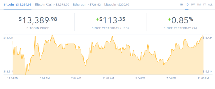 Giá bitcoin đã hồi phục nhẹ lên trên 13.500 USD do định giá thị trường của Ripple giảm 20 tỷ đô la một đêm.