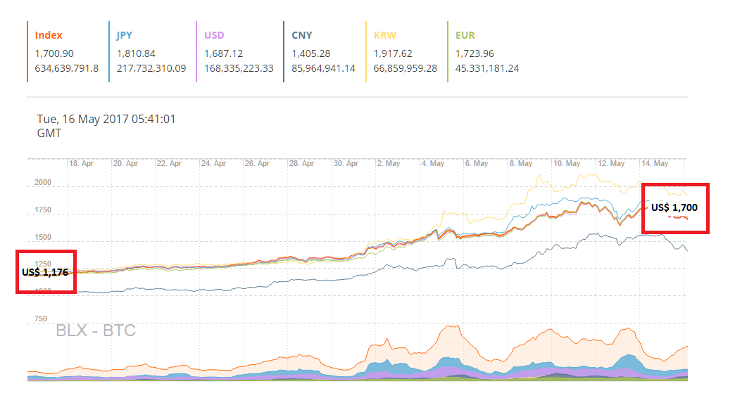 Mặc dù đã gặp phải một loạt các trở ngại nhưng giá của đồng tiền thuật toán số 1 thế giới vẫn duy trì được đà đi lên mạnh mẽ trong vài tháng vừa qua. Trong lúc Bitcoin đang nỗ lực để quay lại khu vực $1,800 kể từ sau đợt chỉnh giá vào ngày 11/5, nó vẫn duy trì mức tăng trưởng hàng tháng đến 30,8%, từ $1,176 vào ngày 16/4 lên $1,700 vào ngày 16/5.