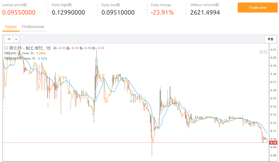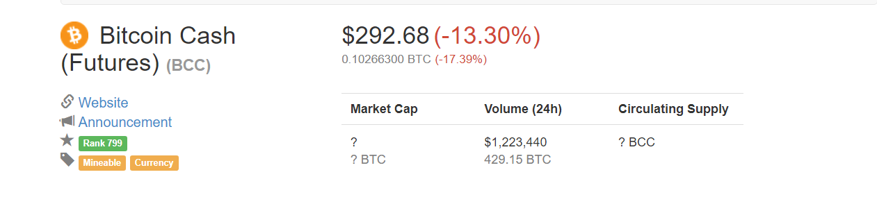 Thế nhưng, kể từ khi được niêm yết đến nay, giá Bitcoin Cash trên ViaBTC đã liên tục giảm. Từ 24-25/7, mỗi một đồng BCC được mua bán quanh mốc $500. Sang ngày 26/7, giá giảm xuống còn $400. Rồi từ đó đến nay, BCC vẫn duy trì đà đi xuống của mình, để rồi rơi thấp hơn mức $300 vào ngày hôm qua (31/7). Tính riêng trong 31/7, giá trị của BCC so với BTC đã giảm đến 24%, giá trị hiện tại của nó trên CoinMarketCap chỉ là xấp xỉ $292.