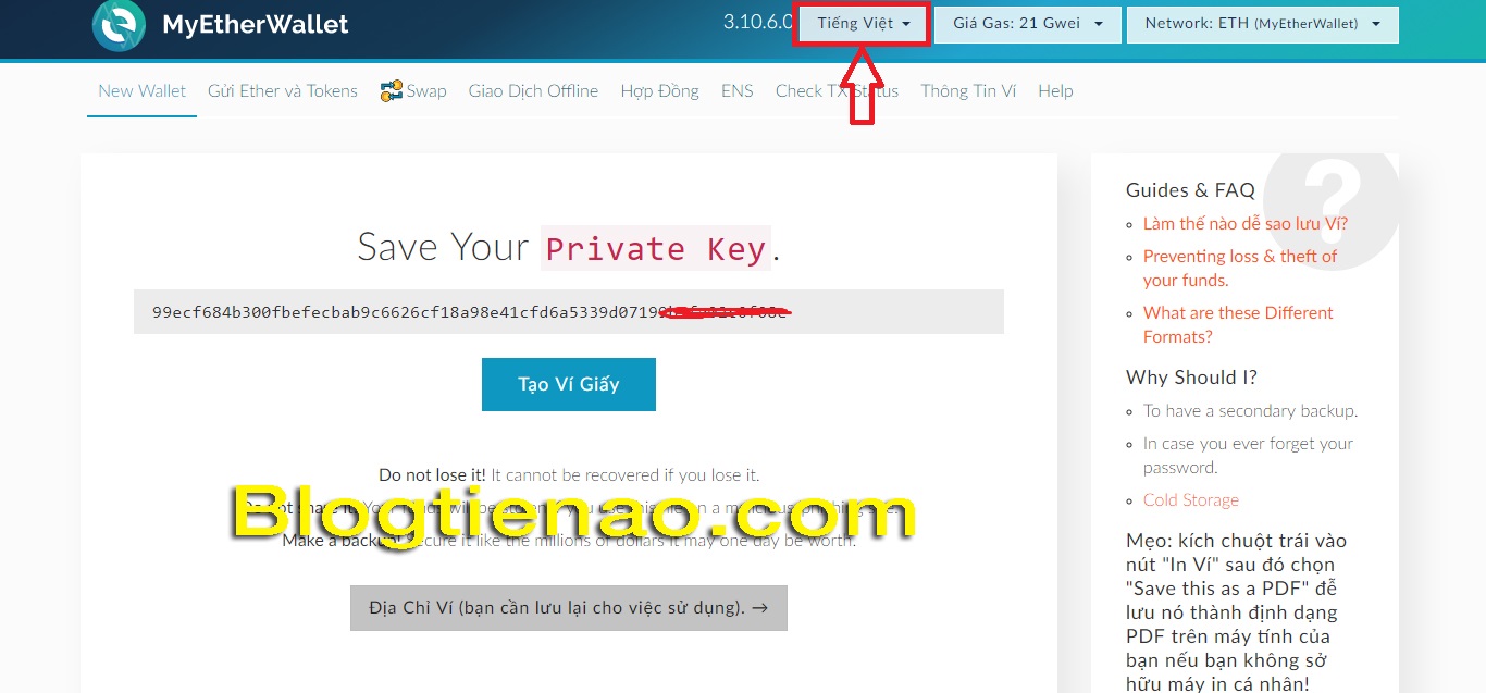 Hướng dẫn cách tạo ví Ethereum (ETH coin) trên MyEtherWallet mới nhất 2017