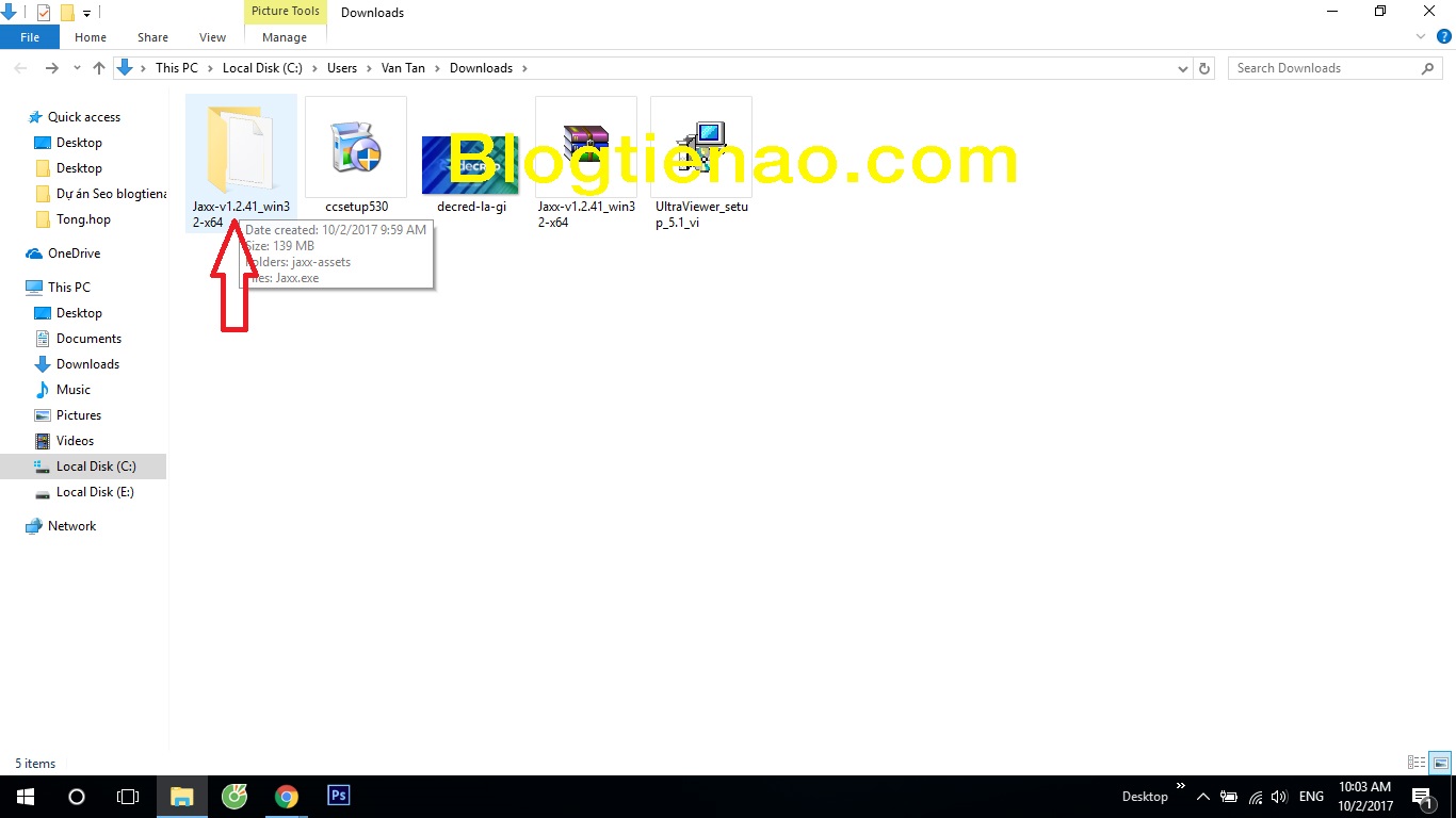 Bước 4: Tiếp tục bạn click đúp chuột vào file “jaxx.exe” để tiến hành cài đặt phần mềm ví Jaxx trên máy tính.