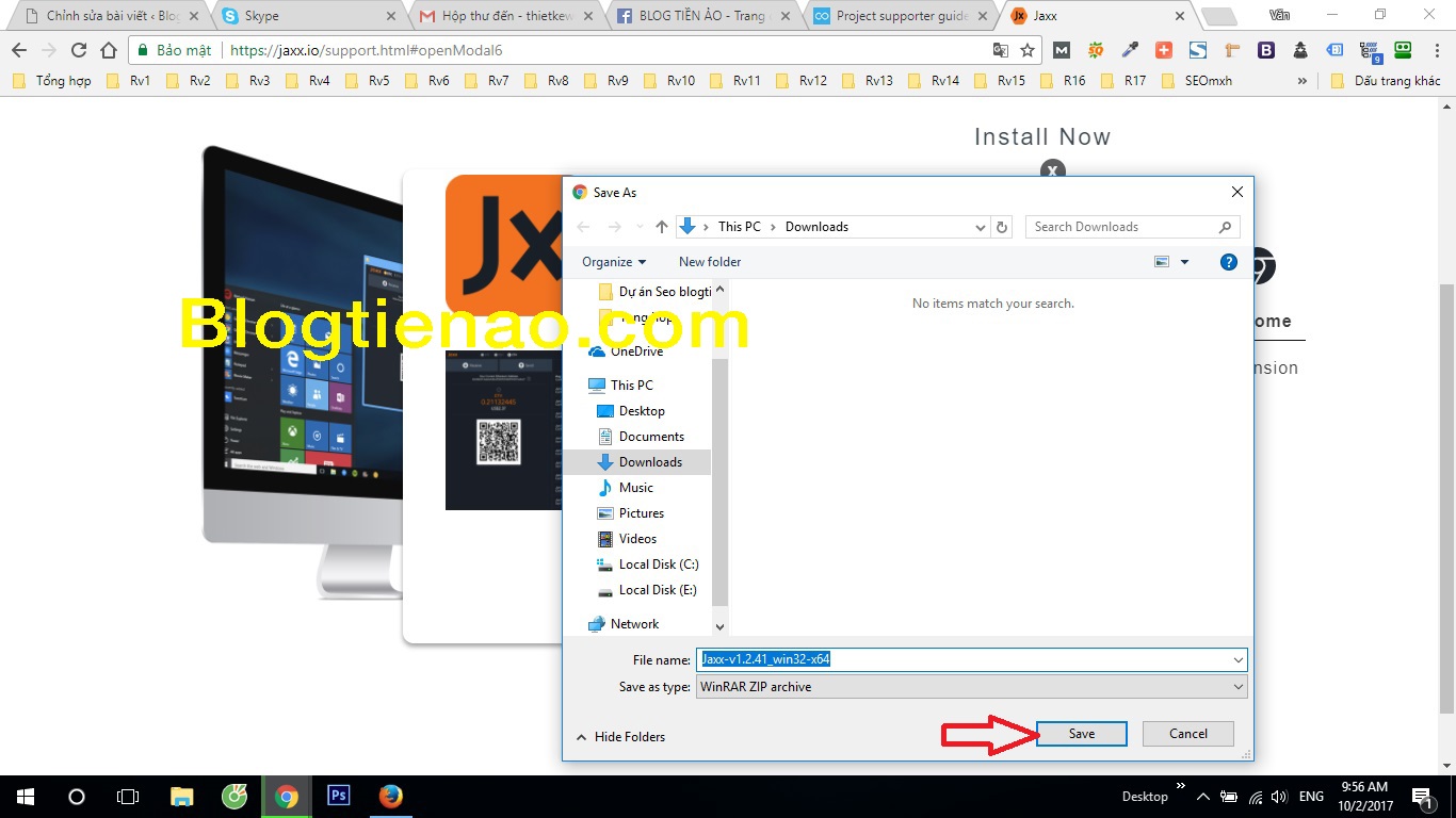 Bước 2: Một cửa sổ hiện lên, bạn chọn thư mục chứa file cài đặt Jaxx, thường mặc định sẽ tải về thư mục download hoặc bạn có thể chọn thư mục bất kỳ, rồi nhấn “Save“.