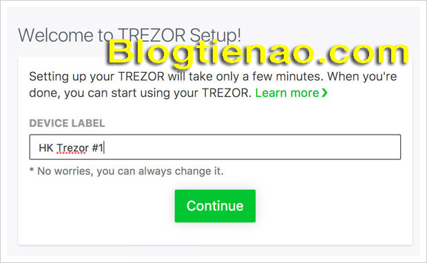 Tiếp đến bạn sẽ đặt tên cho thiết bị Trezor, bạn nhập vào một tên bất kỳ nhé