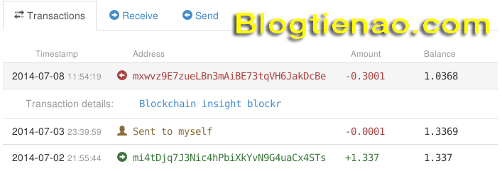Bạn sẽ cần chờ khoảng 15 phút hoặc nếu giao dịch số lượng BTC lớn sẽ phải chờ lâu hơn, khi nào giao dịch được xác nhận nó sẽ mất chữ “Unconfirmed” thay vào đó là ngày và thời gian như hình dưới và Bitcoin chính thức là của bạn.