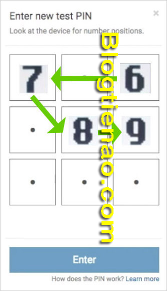 Bây giờ ví dụ bạn muốn đặt mã PIN của bạn là “6789”. Trên màn hình máy tính, bạn sẽ nhập click vào các vị trí tương ứng với vị trí các con số này trong ví Trezor của bạn. Rồi nhấn “Enter