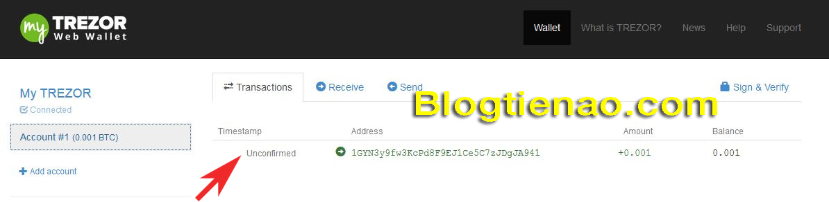 Xác nhận giao dịch gửi BTC trên ví Trezor