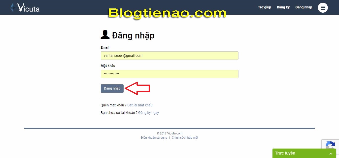Ok. Như vậy là bạn đã đăng ký thành công tài khoản trên chợ mua bán Vicuta rồi đó, sau khi click kích hoạt tài khoản bạn sẽ tự động đăng nhập vào Vicuta.com. Còn lần sau bạn muốn đăng nhập vào Vicuta thì làm như sau: