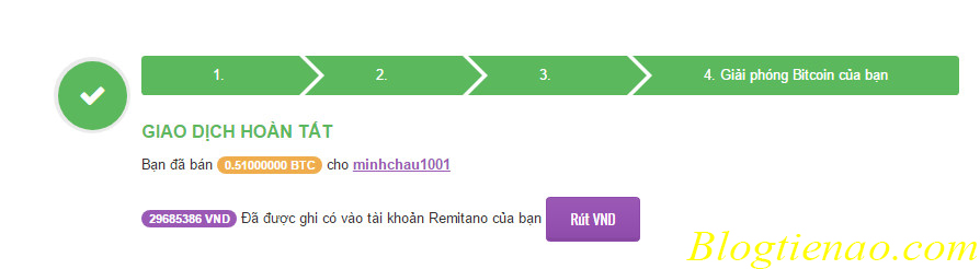 Khi bạn đã bán xong altcoin thành BTC, nếu bạn không muốn trữ Bitcoin nữa (Mình khuyên là nên trữ vì BTC sẽ còn tăng giá trong tương lai), thì bạn có thể rút Bitcoin về sàn Remitano để bán nó ra VNĐ và chuyển thằng vào tài khoản ngân hàng Vietcombank. Để thực hiện các bạn làm theo các bước sau: