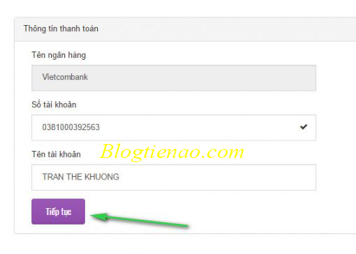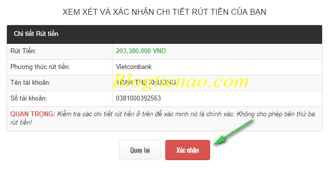 Xem xét thông tin đã nhậpOk. Như vậy là xong, bạn sẽ nhận được số tiền này trong tâm 10 – 15 phút.
