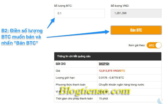 Danh sách người mua BitcoinTiếp đến bạn nhập số lượng BTC cần bán rồi bấm nút “Bán BTC”.
