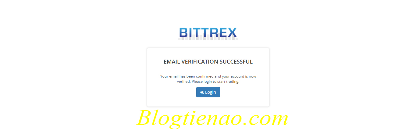 Xác nhận Email đăng ký BittrexBước 3. Sau khi xác nhận Email thành công, Bittrex sẽ chuyển bạn đến giao diện “login”, bạn click vào “Login” rồi điền Email và Password để tiến hành đăng nhập.
