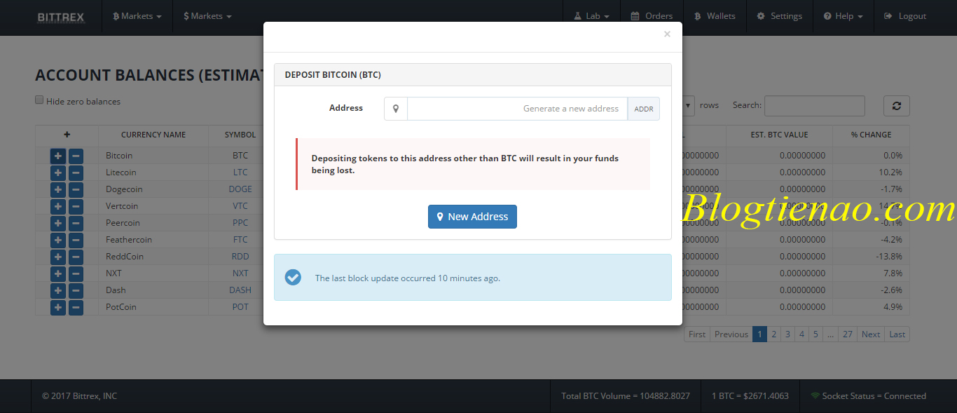 Hướng dẫn tạo địa chỉ ví Bitcoin của bạn trên Bittrex